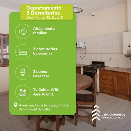 דירת Deptos Dean Funes 45 Centro ממוקמת במרחק של 1 ק"מ על מרכז העיר סלטה ומציעה מקום שהייה עם חניה ציבורית בקרבה. אנו מציעים מקום שהייה עם פטיו, טלוויזיה וטלוויזיה עם מסך שטוח וערוצי לוויין.