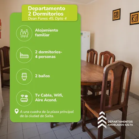 O apartamento Deptos Dean Funes 45 Centro está localizado a 1 km do centro de Salta e oferece acomodação com estacionamento público nas proximidades. Este apartamento fornece os quartos com pátio, TV e uma televisão de ecrã plano com canais por satélite.